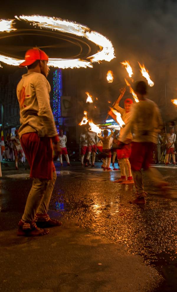 The Kataragama Esala Festival is a vibrant multi religious celebration honouring Lord Skanda (Murugan). The festival features nightly processions with traditional dancers, drummers and beautifully adorned elephants. Devotees engage in acts of penance, including fire walking and body piercing, demonstrating deep spiritual devotion.